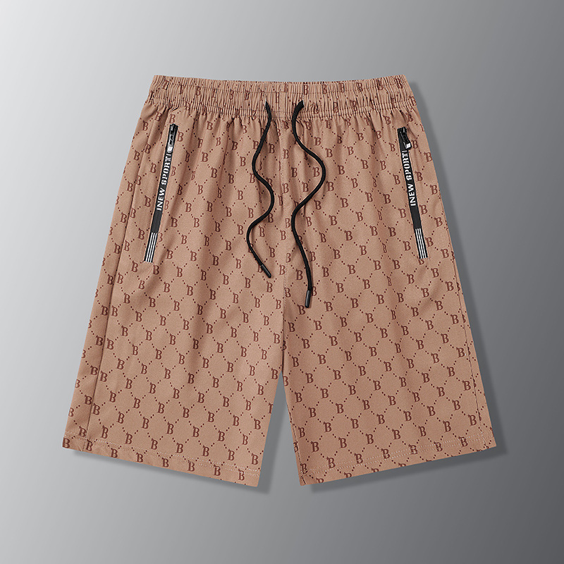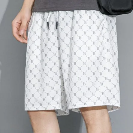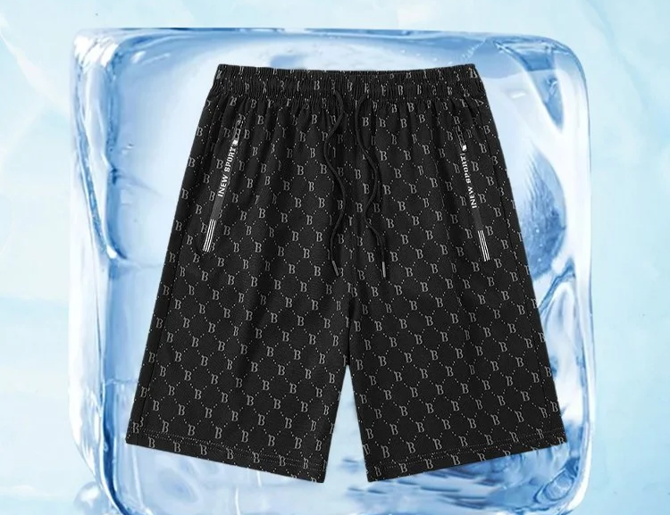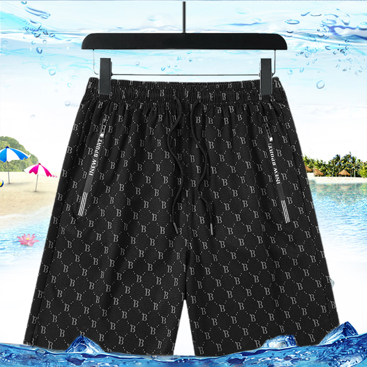 กางเกงขา 5 ส่วนผู้ชาย ผ้าไหมเย็น พิมพ์ลาย ยืดหยุ่น ไซส์ใหญ่