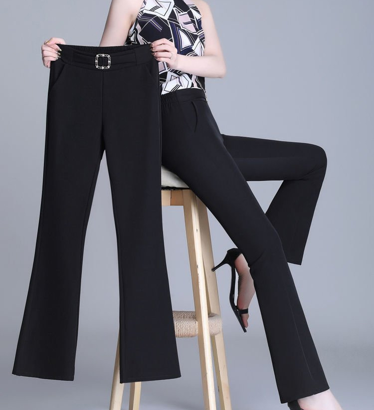 กางเกงขาม้าเอวสูงใส่่ดูผอม เนื้อผ้าไหมเย็นทิ้งตัวได้ดี